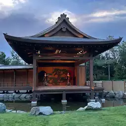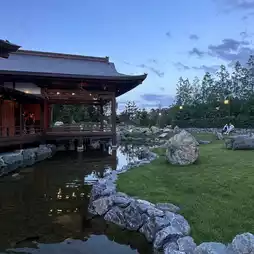 The grounds feature winding paths, tranquil ponds, and meticulously manicured trees, each showcasing the unique charm of a Japanese garden. In spring, cherry blossoms bloom, their pink petals drifting in the breeze, creating a dreamy atmosphere; in summer, lush greenery and the clear waters of the pond offer a refreshing coolness; in autumn, the gardens are blanketed in vibrant crimson leaves, creating a breathtaking spectacle; and in winter, a blanket of snow creates a world of silvery white.