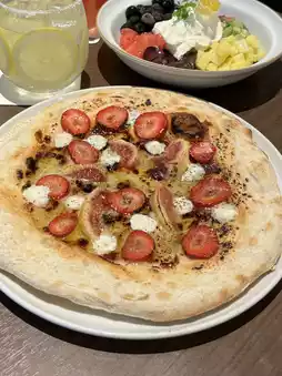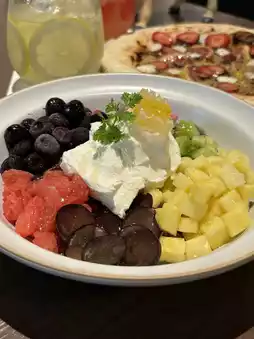 Greek yogurt, which is very popular now, can be chosen from two types: ◻️Tropical ◻️Vitamin. I chose the tropical one 🍉🍊. The granola was crunchy and delicious 😋. The pizza was strawberry, fig, and mozzarella! The sweet and salty taste was irresistible, and there was plenty of honey to add to your taste! It was delicious 🫧. You can choose non-alcoholic salty sour, so I went for the non-alcoholic one this time 🍻. I was also very interested in cucumber and tomato, but this time I chose the citrus one! It was a delicious drink that will help me get through the summer ♥️. Thank you for the meal 🫧. #FukuokaCafe #KitakyushuCafe #KokuraKitaWardCafe #KokuraCafe #FruitPizza #FruitPizza #GreekYogurt #TravelingWithMe