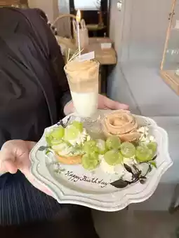 A lovely light-colored cafe Liberte in Mojiko 🫶The seasonal fig sweets, tart and rare cheesecake were both delicious ☺️And they also made a birthday plate with Shine Muscat, which is in season now, so it was a wonderful birthday surprise 🎂