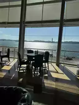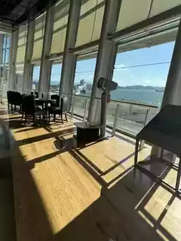 A cafe on the 4th floor of the Kanmon Strait Museum