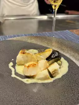 The chef cooked the food right in front of me while watching the night view of Kitakyushu.
