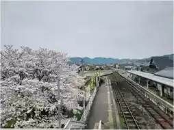 - 💮🌳 The path to the shrine is full of cherry blossoms that are in full bloom, very beautiful