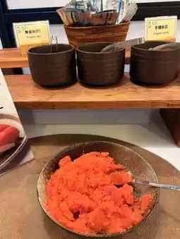 There is a breakfast time survey next to the elevator when you check in, which will let you know the portion and time of the supplementary meal. When it comes to breakfast, you can eat salad, four kinds of bread, grilled fish, dashi omelette, and mentaiko all you can eat. The meals are not luxurious, but they are nutritious and filling. Overall, it is like a lightweight competitor, taking the needs of tourists into consideration. It is not luxurious but comfortable.