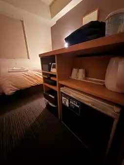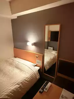 SuperHotel was founded in Osaka in 1989 and now has 170 branches. It has been ranked first in the economic department of chain hotel satisfaction survey for ten years. The room has a comfortable mattress and you can choose your own pillow in addition to the long pillow in the room. The 15-square-foot space can be used to store items such as the refrigerator as a table using furniture, and a combination lock can be used to save on magnetic card fees. The room is equipped with a Sharp ion air purifier.