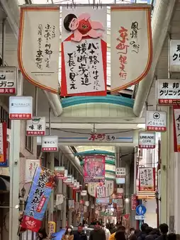 The development of Uomachi Gintengai can be traced back to the Edo period. Fishmongers originally gathered here, so it was called Uomachi. In the 39th year of the Meiji era, it developed into the Ebisu Market. In addition to fish products, kimonos, and long-established Japanese desserts, it is a commercial cluster surrounded by the station. In 1951, shop owners raised funds to build an arcade. It was the first shopping street in Japan to have an arcade, and the history of Ginten Street began. There were grand promotional methods back then, and a lottery was held after the war, with the first prize being a house worth 120,000 yen.
