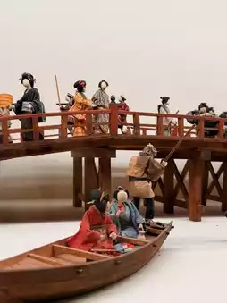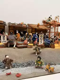 Here you can experience how heavy the stones were when porters built the city. You can play Yabusame (mounted archery) in the electronic interactive game, and the electronic display screen can help you put on ancient costumes and experience what it was like to be an ancient person. Then, the detailed puppets recreate the life of the people in ancient Kokura, the visits of foreign envoys, war meetings, and step by step, the curation brings us into the world of Kokura in those days.