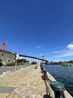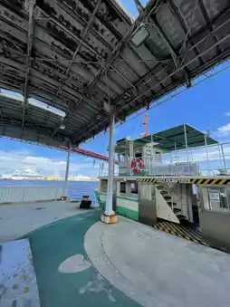 Wakato Bridge and Wakato Ferry are famous routes connecting Tobata and Wakamatsu in Kitakyushu. The red suspension bridge of Wakato Bridge is lit up at night, creating a unique atmosphere along with the surrounding factory night view. The Wakato Ferry that passes under the bridge is affectionately known as the "Ponpon Boat" and although it is only a 3-minute boat ride, it was a luxurious time to enjoy the city, sea and bridge all at once. It costs 100 yen and bicycles are allowed. It is a great way to get around for locals, but also a great way to sightsee. If you ride at dusk, the red silhouette of the bridge reflected on the water is very impressive. The retro townscape remains, and it is fun to stroll around after getting off the boat. If you have time, it is best to experience both crossing the bridge and riding the boat.