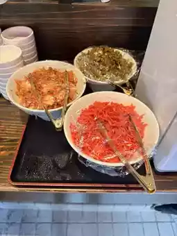 All-you-can-eat mustard greens, kimchi, and pickled ginger at lunch⭐️