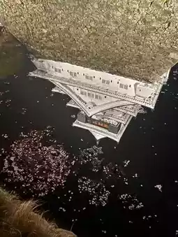 The illuminated Kokura Castle and cherry blossoms reflected in the surrounding river