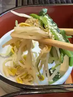 The side dishes included kimchi, namul, and chijimi, all packed with vegetables and perfect for pairing with rice.