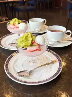 Then, we moved to the cafe next door and enjoyed strawberry panna cotta. 🍓✨