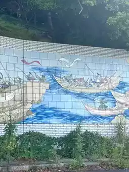 Along the road is the "Genpei Dannoura Battle Picture Scroll," one of the largest murals in Japan.