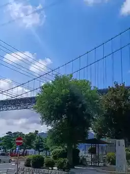 Cross the Kanmon Strait by boat – Take the limited express train from Nagoya Station to Kokura, then transfer to the JR train to Mojiko. Purchase a one-way ticket for the "Karato" line at the port terminal. Payment is cash only, and the signs are clear and easy to understand. Under the blue sky and white clouds, gazing at the magnificent Kanmon Bridge (Kanmon Bridge) connecting Honshu and Kyushu, you'll feel a sense of peace and tranquility.