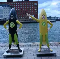 There's a Banana Man striking a cool pose in front of a Moji Port retro shop. As the port was the first to import bananas to Japan, he seems to serve as a mascot of sorts. 🍌