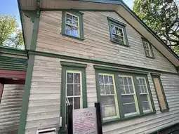 🏡 A perfect photo spot featuring the elegant exterior of the historic Western-style building with its charming green windows and wooden walls