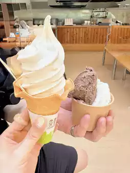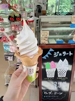 Nestled amidst the expansive greenery of nature, the Urabandai Product Center serves its famous mountain salt gelato. 🍨