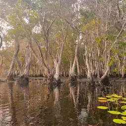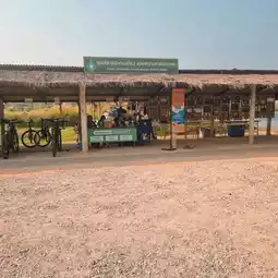 As for me, I rented a kayak for 100 baht per hour. The distance to paddle is about 2-3 km. There are life jackets. The officer gave detailed advice on how to paddle and the route. We paddled from the left in a circle. There are signs along the way. Along the way, there are lotus gardens on both sides of the road. You can row a boat under the bridge and see the forest of celandine trees.