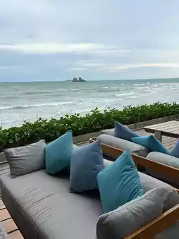 Hello everyone, today we have a beachfront accommodation to recommend. MERS Kyo Rayong Lom Talay Villa, I would like to say that this accommodation is right on the beach and the atmosphere is very good. For anyone who has plans to visit Rayong, we would like to recommend that you try staying here. The accommodation is good, clean, the staff provides good service, and most importantly, the atmosphere is very good. Especially in the evening, come walk along the beach or sit and eat delicious food. I guarantee that you will be very satisfied. 📍Rayong