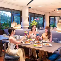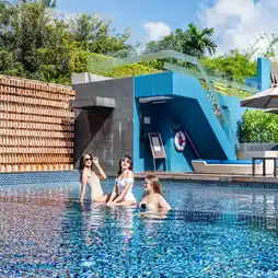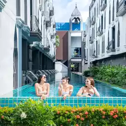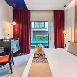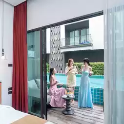 🛌This time, my friends and I stayed in a Deluxe Pool Access room, decorated in a contemporary Thai style, with warm colors, a large, soft, comfortable bed, a balcony in front of the room, connected to the swimming pool, with sunbeds. Lying down to enjoy the atmosphere by the pool is very private. And those who love sweet things must not miss the Afternoon Tea set, Thai desserts. Let me tell you, it's very delicious and smooth. I want you to try it!