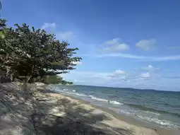 🌴🌊 Hello, today I drove from Bangkok for about 3 hours to go to the sea in Rayong Province. This beach is Laem Mae Phim Beach. The sea here is clear water. You can swim. There is a seafood restaurant nearby. There is a lot of parking.
