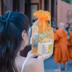☀️ In the morning, after breakfast, the hotel also offers alms-giving activities. The hotel will prepare the alms for us, and the monks will come to the hotel to collect alms. I must say that it will fill both body and mind. 💛