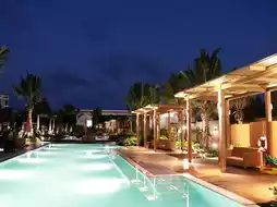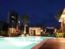 🏠Inside the accommodation area, there is a central swimming pool of the hotel, surrounded by houses.