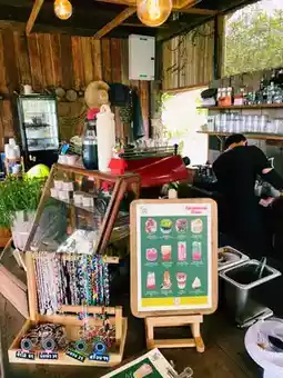 A cafe that suddenly appears as you walk through the majestic natural forest ☕️