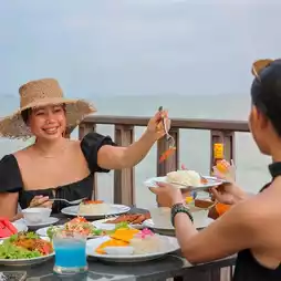 In the evening, go for dinner at the 𝙆𝙖𝙫𝙞 restaurant, with a nice atmosphere by the sea, watching the sunset, so romantic. I recommend ordering fried food to eat with #SauceSiam, delicious, sweet and spicy, and have a buffet breakfast at the 𝘼𝙘𝙘𝙚𝙣𝙩 restaurant. There is a variety of food, full and delicious, ready to take on a new day to the fullest.