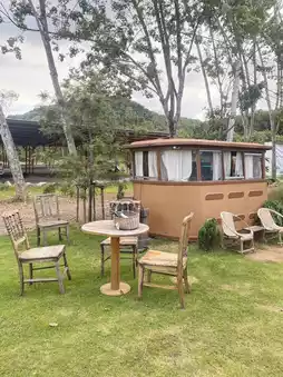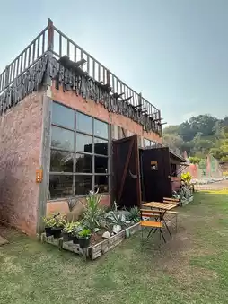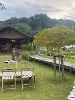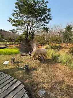 A must-visit cafe and farm in Rayong for nature and camping enthusiasts. This cozy spot is surrounded by lush greenery and features adorable animals like horses, buffaloes, and chickens. With plenty of seating options both indoors and outdoors, it's perfect for relaxing. Don't forget to stop by if you're in Rayong—there are plenty of beautiful photo spots! Enjoy a laid-back time sipping tea, coffee, and indulging in delicious pastries.