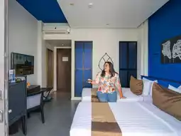 🥰 It's one of my favorite #Rayong accommodations. Just a little over 3 hours from Bangkok by car, it offers complete amenities, a shady atmosphere, and a relaxing atmosphere. The design blends Thai elements with modern touches, with a white and blue theme and wooden furniture.