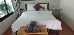 Koh Mun is a small island located in the eastern Gulf of Thailand in Rayong Province. There are 3 islands: Koh Mun Nai, Koh Mun Klang, and Koh Mun Nok. Today, we will go to Koh Mun Nok. There is only one accommodation on Koh Mun Nok, which is Koh Munnork Private Island. We booked through Agoda for 3 days and 2 nights. We have to go to the pier to take a ferry to the island. There is free parking and a bathroom at the pier. We check in at the accommodation. The staff will tag our luggage and then we wait and get on the boat. The staff will carry our luggage to the boat for us. If you get seasick, you should take medicine. The day we went, there were some waves. After that, we took a boat for about 45 minutes and arrived at Koh Mun Nok. The accommodation will let us change to a tub boat because the water in front of the beach is very shallow. Big boats cannot park because they are stuck on rocks and coral. When we walked up, there was a welcome reception and the staff will carry our luggage to the front of our accommodation. We checked in, received the room key, and changed into running clothes to go into the sea. The water is very clear. The sand is white and smooth. The accommodation is like a private island. We live on an island and swim in both the pool and the sea. Play snooker, on the boat, dive, find a corner to chill and read a book. Let me tell you that this trip was impressive in every way, from checking in until checking in. Most importantly, the food was delicious. I will review the food separately. I recommend going there, the sea is very beautiful.