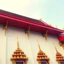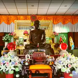 🎗 The temple is spacious and quiet. You can go up to pay homage to Luang Pu Kuan's body at the wooden pavilion on the upper floor. You can walk under Luang Pu's coffin. This temple emphasizes quietness. For those who have just arrived and cannot find the worship pavilion, enter the alley next to the school and walk through the lawn to the wooden pavilion next to the bell tower. There will be a wooden hut that is over 200 years old. I recommend you to stop by and pay homage to Luang Pu.