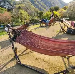 There are hammocks set up all over the "Kaze no Oka Grass Park" here✨