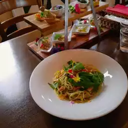 Enjoy a wonderful dish decorated with freshly picked herbs and edible flowers.