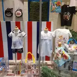 Sizes range from 80 to 120. Prices were mostly from 3,000 yen for T-shirts, skirts, and pants, and 5,000 yen for dresses.