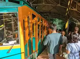 The buses and cables are very colorful and lovely, so I think boys will be happy too! ! The cable doesn't hang in the air like a ropeway, but goes up the road like a train, so it's not scary, so it's also recommended for girls♪
