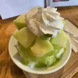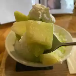 I went on a girls trip after hearing that the summer specialty ice cream "Melon Ice (1,500 yen)" has started. Ripe melon, homemade melon syrup, melon jelly inside, it was the most delicious melon ice cream I've ever had.