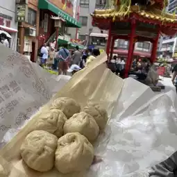 This is a sister store of Lao Xiang Ji, where the pork buns are very popular and there are long lines. They usually sell shiitake mushroom pork buns, but on days when Lao Xiang Ji is closed, they sell Lao Xiang Ji's pork buns. It's easy to find as it's located in front of Lao Xiang Ji, across from the plaza.
