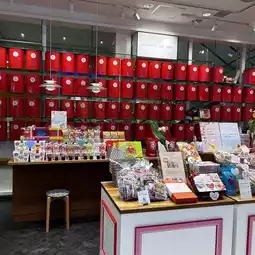 The tea shop had a row of cute red cancans, so you'll want to go in!