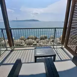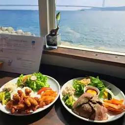 Lunch overlooking the sparkling ocean is truly the best.♪