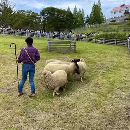 This is an introduction to the South Area of Mt. Rokko Ranch. The main attraction in the South Area is the Sheepdog Show (held on Saturdays, Sundays, and holidays). The strong-eyed sheepdogs Neil and Sophie chase sheep with their eyes, and the show is amazing. On this day, Sophie was showing off. The rabbit petting experience is held on weekdays. There is a real sheep named Shaun with black feet. It is a recommended tourist spot that will heal you no matter when you go.