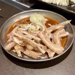 A must-order dish. Many people come to the restaurant just to eat this cold dish. Liver cooked at low temperature is topped with sesame oil and salt.