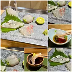 Striped horse mackerel, flounder, and sea bream. Enjoy the crunchy, fresh texture and umami of the ingredients. Enjoy with ponzu and soy sauce. The striped horse mackerel topped with plenty of sweet wasabi and soy sauce is particularly delicious.