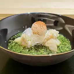 Hairy crab with vinegared crab jelly. Richly flavored crab meat is topped with crab miso and mixed with the crab vinegar jelly. You can enjoy the exquisite harmony of sweetness and sourness.