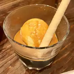 Sharp sourness and moderate bitterness, with a smooth texture. Caramel sauce is poured over vanilla ice cream. You can enjoy the bitter and sweet taste.