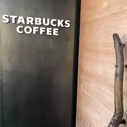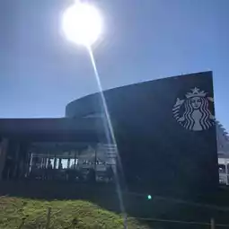 This is a Starbucks where you can enjoy your coffee while watching the sun reflecting off the sparkling ocean.
