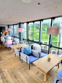 Please note that you cannot take food from the first floor up to the seats on the second floor💦