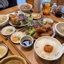 Kyushu Miyazaki local chicken fried in special Hishimitsu soy sauce sauce, with a delicious pork soup with lots of ingredients and a sweet broth🐷