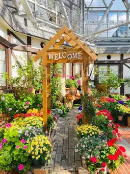Beautiful flowers welcome you as you enter the Glass House entrance. This is a very popular photo spot. The light shines through the glass ceiling, making the colorful flowers look even more dazzling. This is a recommended spot that you cannot miss at Nunobiki Herb Garden.