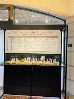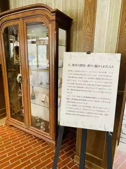 There is also a chart of the original brand products sold at the herb garden. There are also antique perfume bottles and machines that extract fragrances, so although it is not a very large space, it is quite an enjoyable facility.